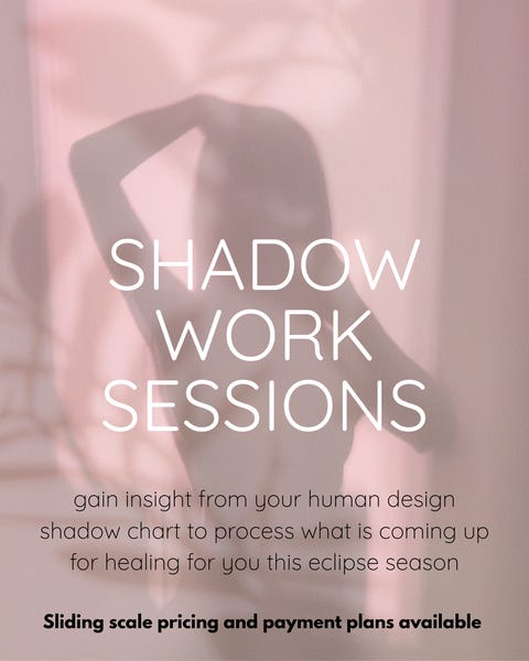 Using my human design shadow chart to navigate this eclipse season and having this new session available for you to learn to do the same is going to be so nice. It helps so much to navigate the shifts this time of year bring (especially with all of these massive astrological events!)